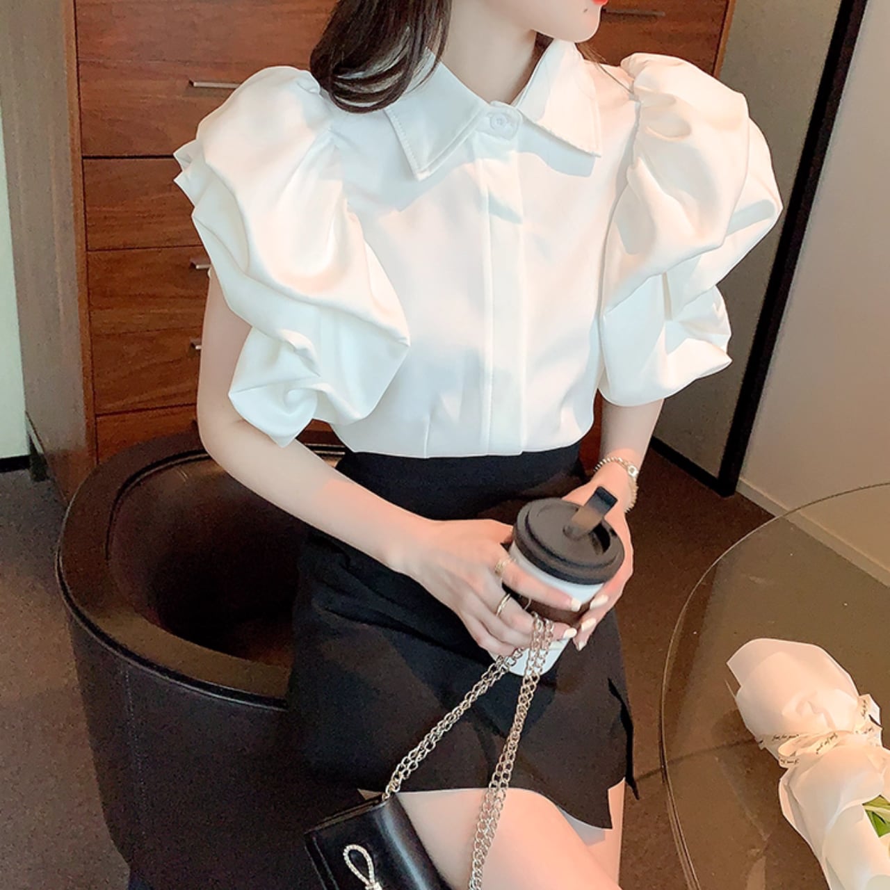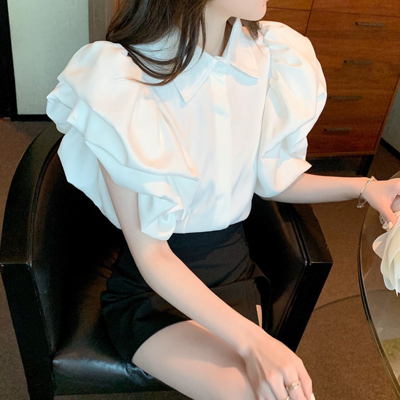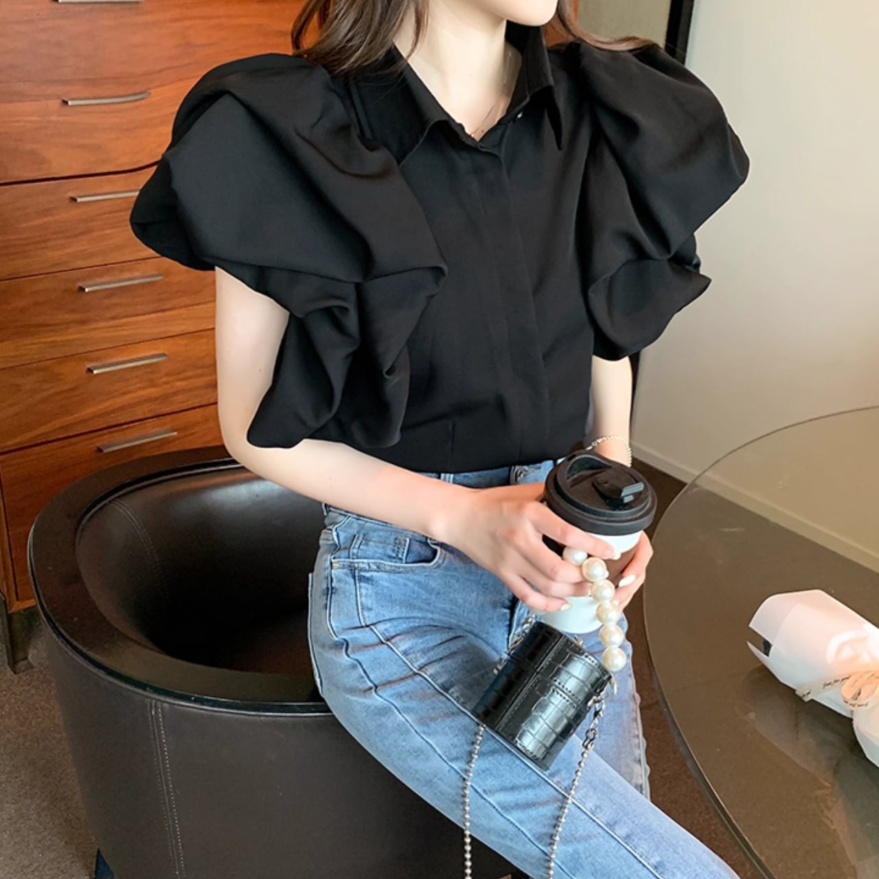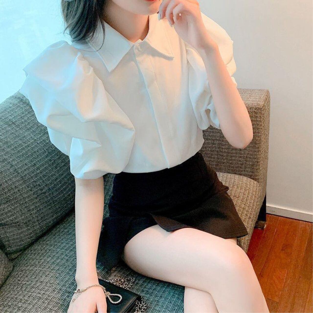 ふんわりとしたパフスリーブが魅力の、上品なフレンチブラウス。