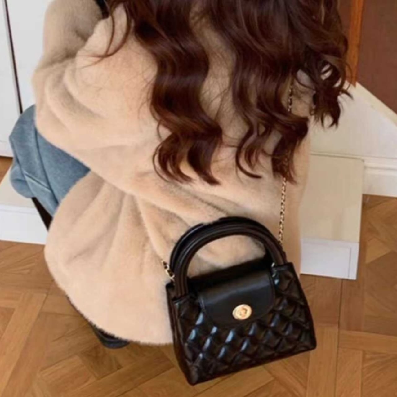 シックで洗練されたデザインが特徴の2WAYキルティングチェーンハンドバッグ 。高級感のあるキルティング素材に、エレガントなチェーンがアクセントとなり、シーンを選ばず活躍します。