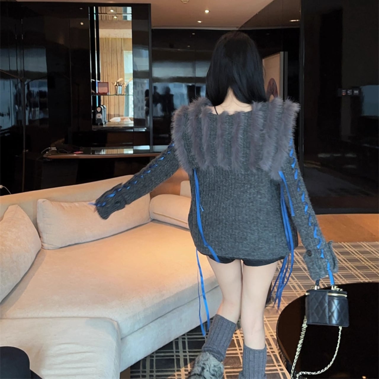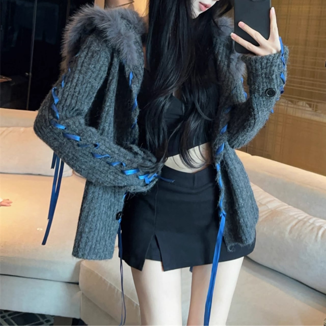 袖口のリボンディテールが印象的な、上品でフェミニンなセーターカーディガン。