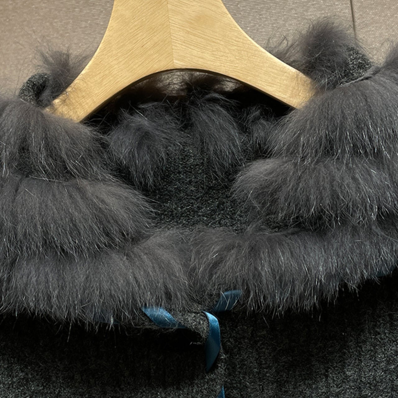 ふんわりとした襟まわりと立体感のある編み地が、シンプルな中にも華やかさを添えます。