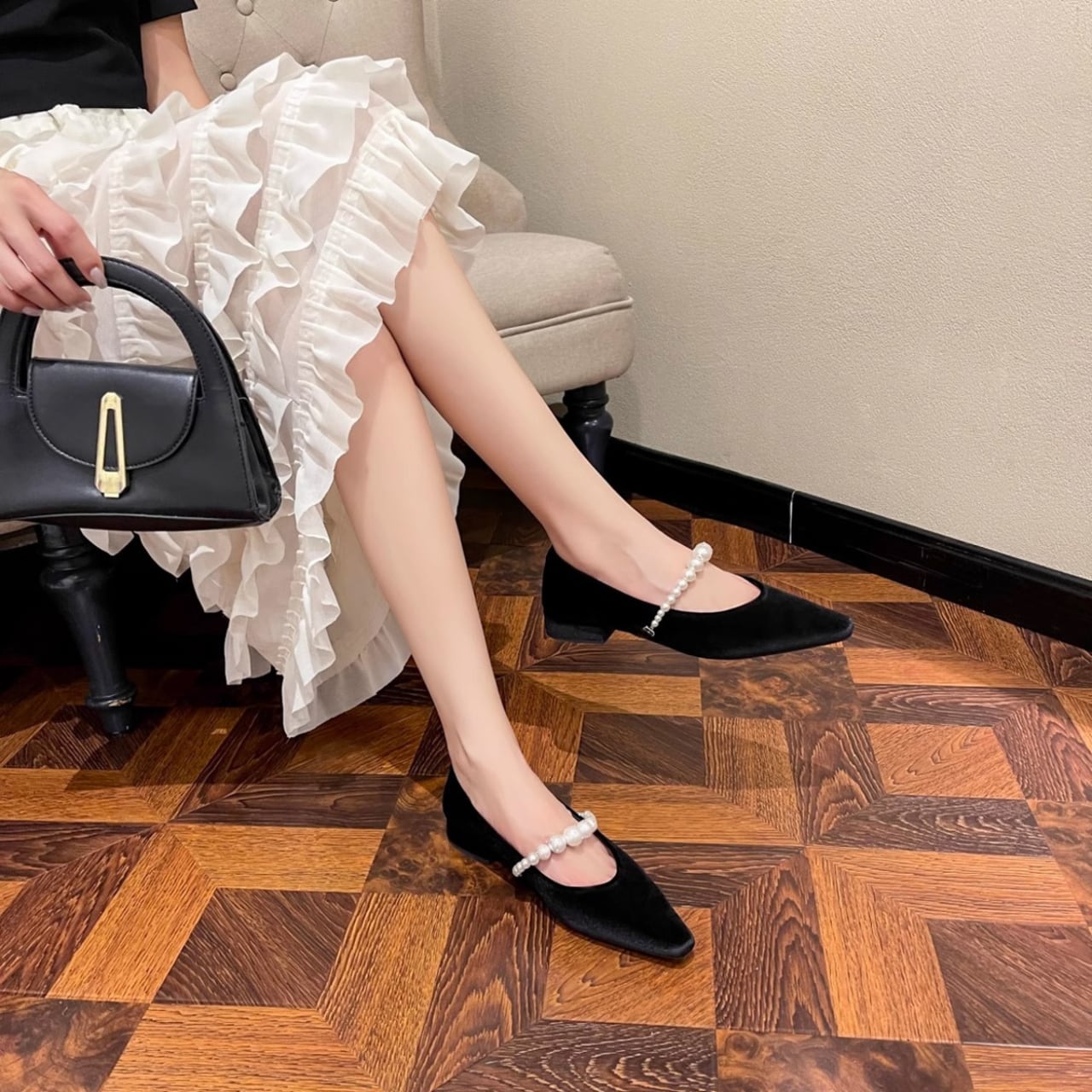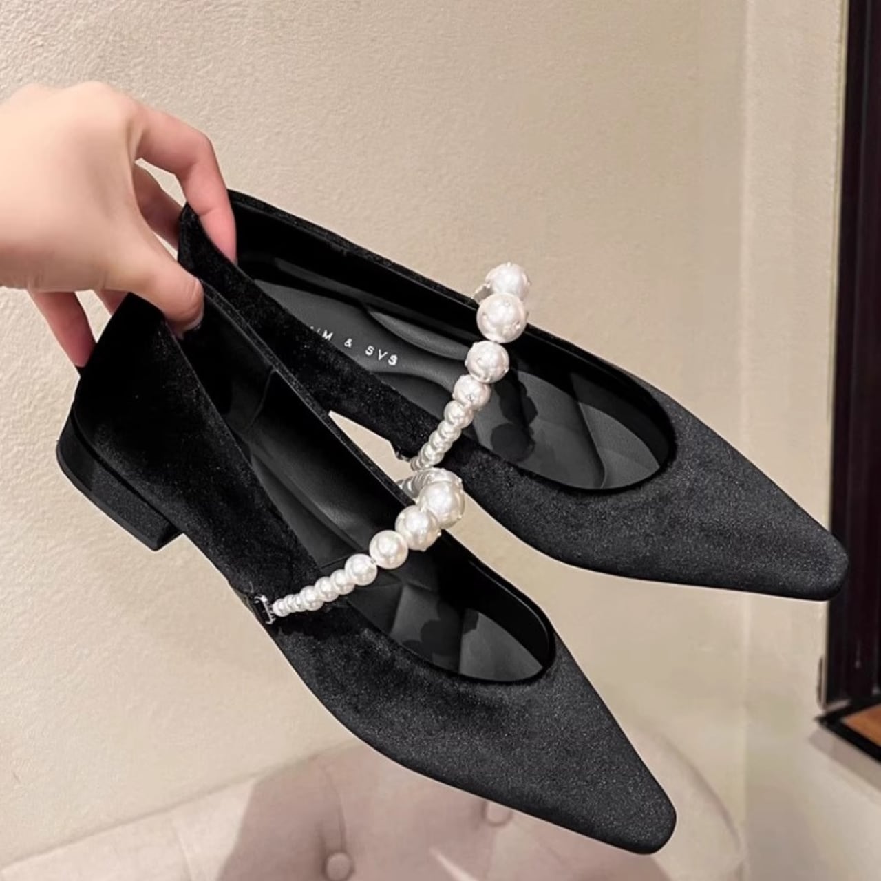 パールストラップ フラット パンプス SH22