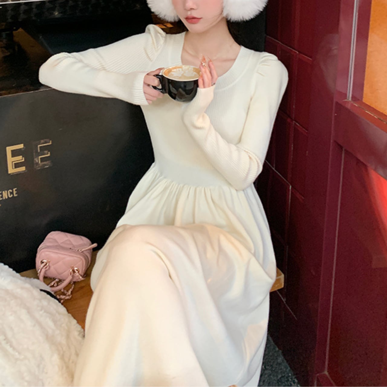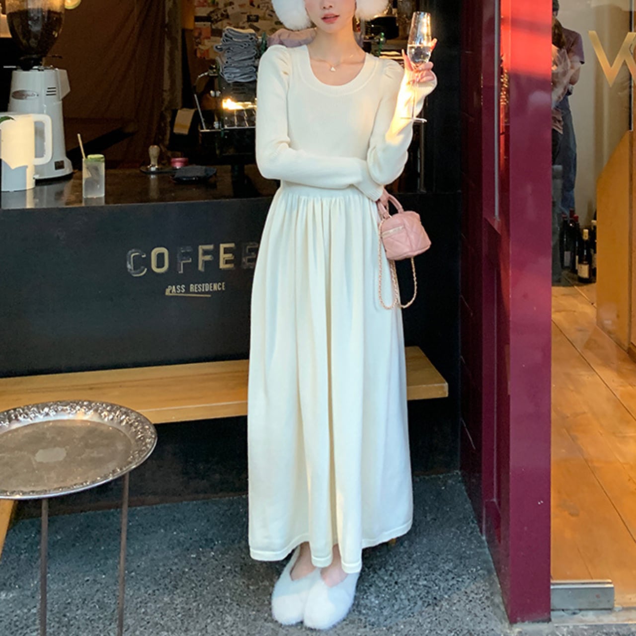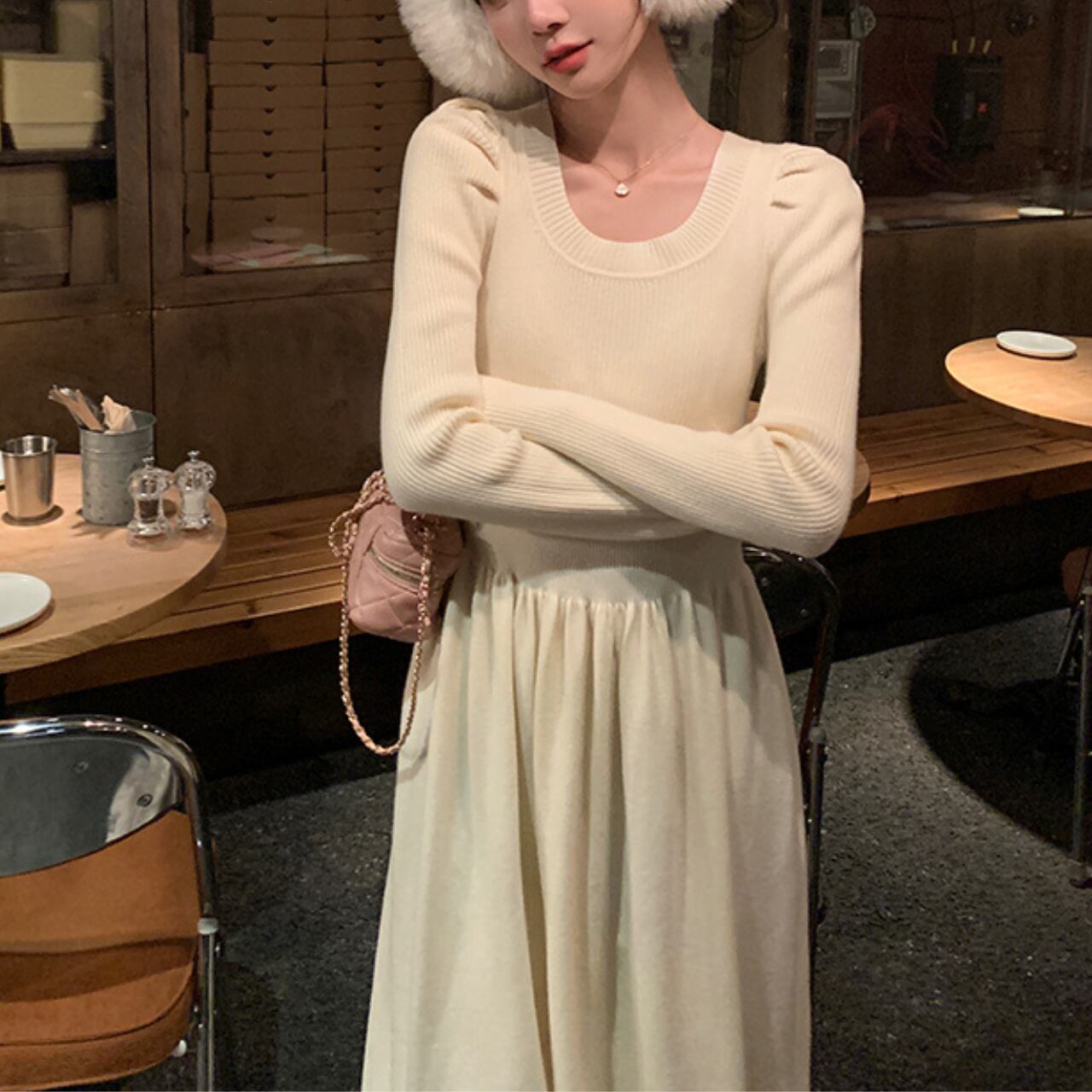 上品なフレンチムード漂うロングニットワンピース。